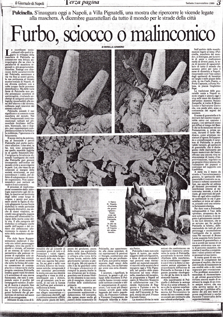 Published Dicembre 18, 2014 at 846 × 1200 in Su Pulcinella Maschera del Mondo e Maison de Polichinelle Su Pulcinella maschera del mondo, Il Giornale di Napoli, 3 novembre 1990 ← Previous Next →