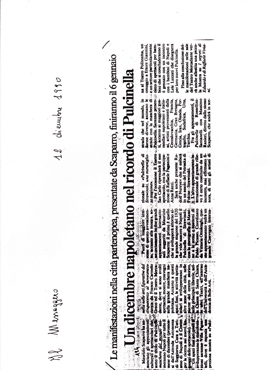 Su Pulcinella maschera del mondo, Il Messaggero, 12 dicembre 1990